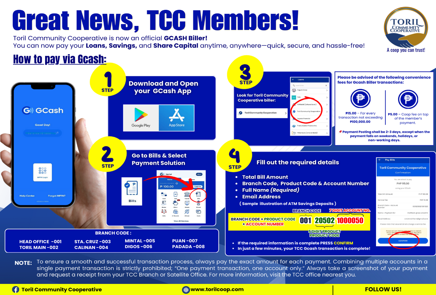 𝐆𝐫𝐞𝐚𝐭 𝐧𝐞𝐰𝐬, 𝐯𝐚𝐥𝐮𝐞𝐝 𝐦𝐞𝐦𝐛𝐞𝐫𝐬 𝐤𝐚 𝐓𝐂𝐂! 𝐓𝐨𝐫𝐢𝐥 𝐂𝐨𝐦𝐦𝐮𝐧𝐢𝐭𝐲 𝐂𝐨𝐨𝐩𝐞𝐫𝐚𝐭𝐢𝐯𝐞 𝐢𝐬 𝐩𝐫𝐨𝐮𝐝 𝐭𝐨 𝐚𝐧𝐧𝐨𝐮𝐧𝐜𝐞 𝐭𝐡𝐚𝐭 𝐰𝐞 𝐚𝐫𝐞 𝐧𝐨𝐰 𝐚𝐧 𝐨𝐟𝐟𝐢𝐜𝐢𝐚𝐥 𝐆𝐂𝐚𝐬𝐡 𝐛𝐢𝐥𝐥𝐞𝐫! Enjoy the convenience of 𝐬𝐞𝐚𝐦𝐥𝐞𝐬𝐬 𝐭𝐫𝐚𝐧𝐬𝐚𝐜𝐭𝐢𝐨𝐧𝐬 and 𝐚𝐜𝐜𝐞𝐬𝐬𝐢𝐛𝐥𝐞 𝐬𝐞𝐫𝐯𝐢𝐜𝐞𝐬 at your fingertips —join us today and experience the ease of managing